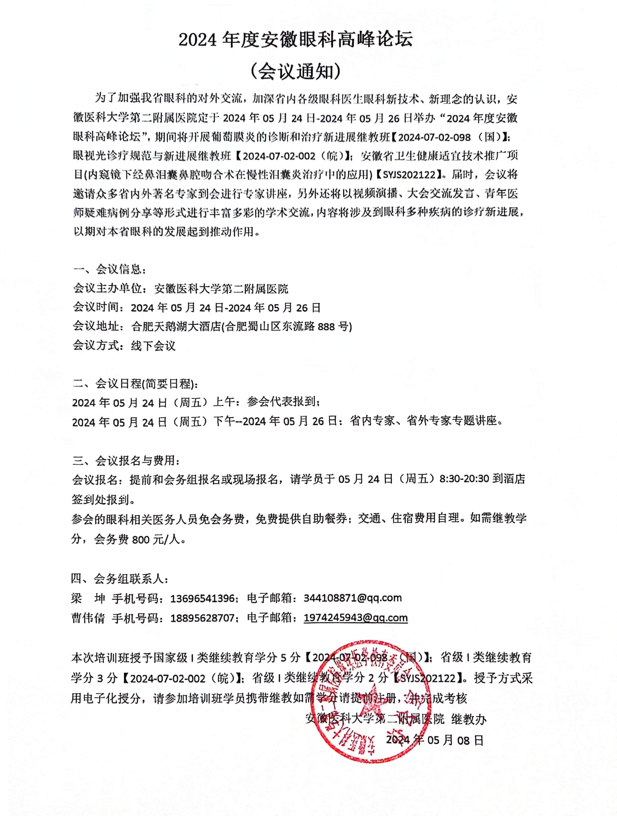 5.24-26合肥|2024 年度安徽眼科高峰论坛---2024.5.11 发布时间:2024-05-11 来源: 作者: