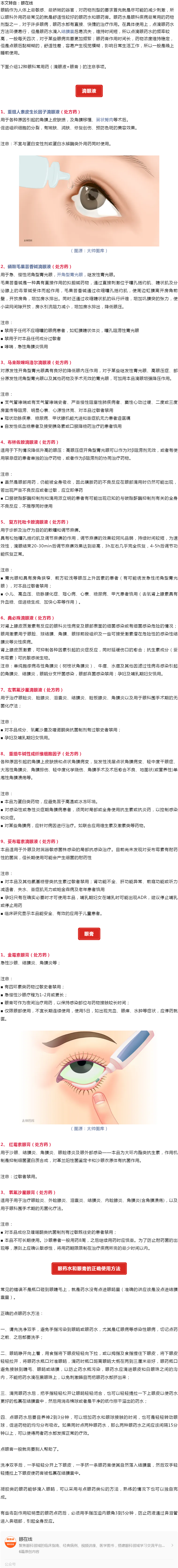12种眼科常用药的注意事项---2024.6.28 发布时间:2024-06-28 来源:眼在线 作者:眼在线