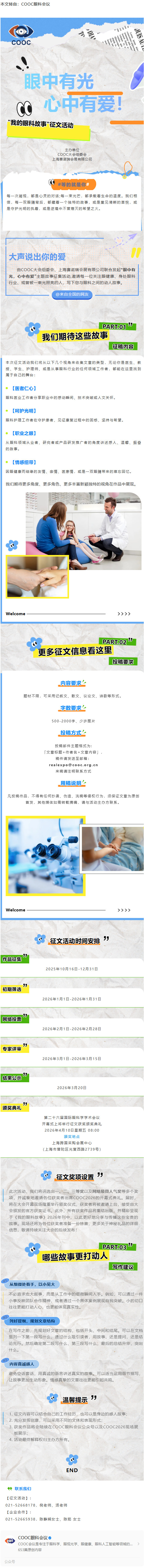 征文通知丨“眼中有光,心中有爱”--"我的眼科故事"征文活动---2025.10.16 发布时间:2025-10-16 来源: 作者: