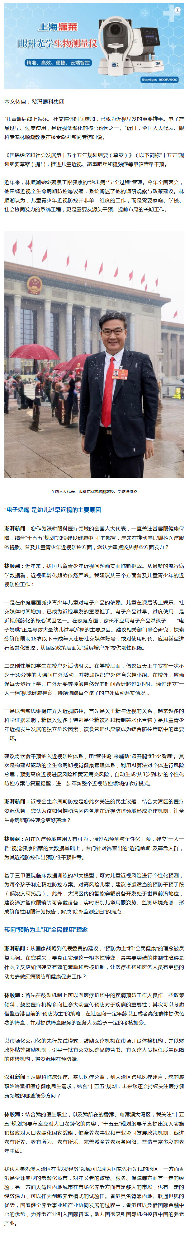两会专访|近视低龄化如何破解?林顺潮代表:协同发力减少儿童使用电子产品时长--2026-03-16 发布时间:2026-03-16 来源: 作者: