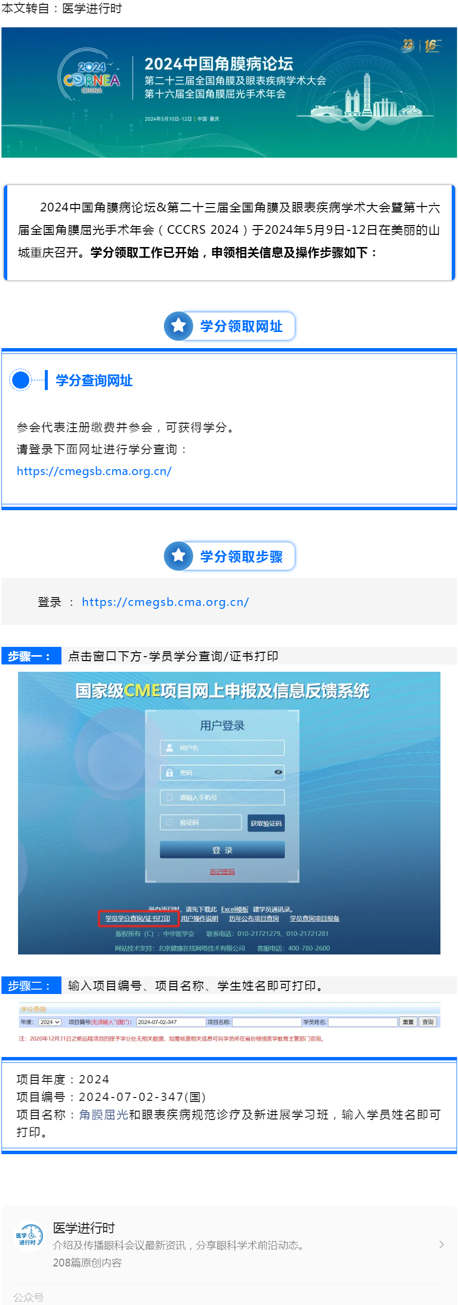 学分领取丨2024中国角膜病论坛&第二十三届全国角膜及眼表疾病学术大会暨第十六届全国角膜屈光手术年会---2024.7.3 发布时间:2024-07-03 来源:医学进行时 作者:医学进行时