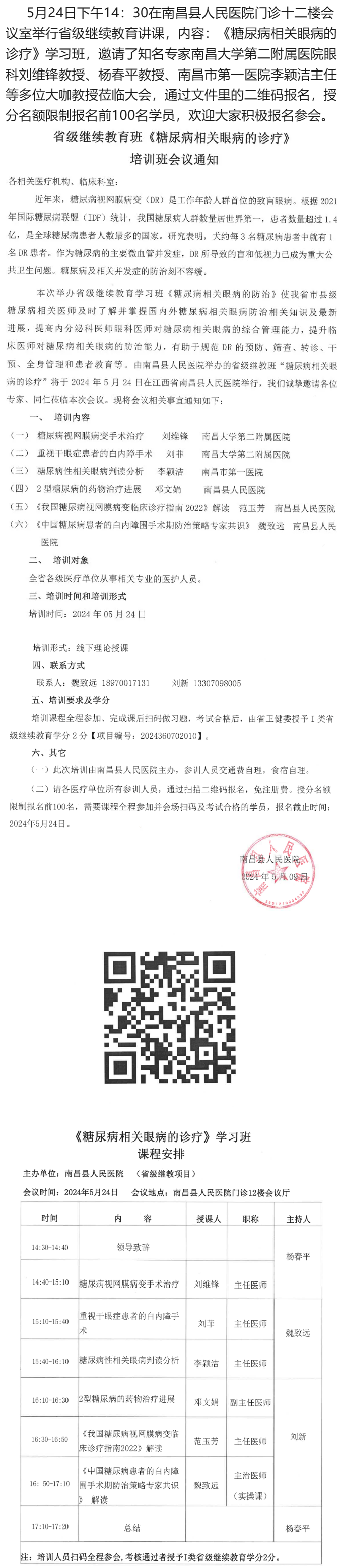 5.24南昌|省级继续教育班《糖尿病相关眼病的诊疗》培训班会议通知---2024.5.13 发布时间:2024-05-13 来源: 作者: