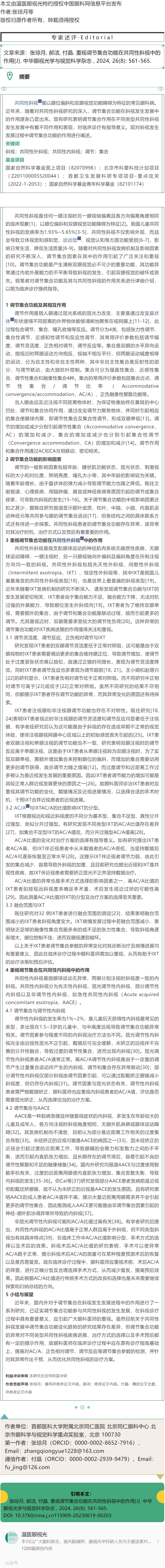 重视调节集合功能在共同性斜视中的作用---2024.8.16 发布时间:2024-08-16 来源:温医眼视光 作者:张琼月等