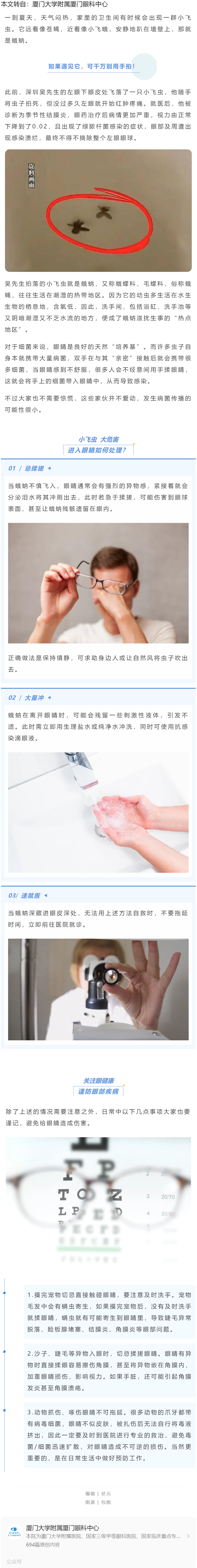 随手拍死蛾蚋,男子被迫摘除眼球。医生提醒……---2024.8.14 发布时间:2024-08-14 来源:厦门大学附属厦门眼科 作者:厦门大学附属厦门眼科
