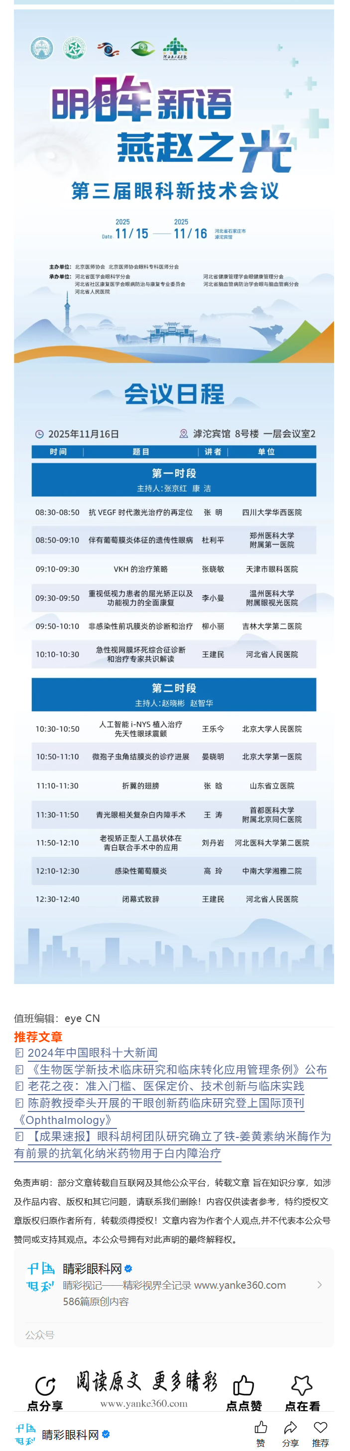 新闻中心 您的当前位置:首页 > 新闻中心 > 11.15-16石家庄 | “ 11.15-16石家庄 | “明眸新语,燕赵之光”第三届眼科新技术会议日程发布---------2025-11-12 发布时间:2025-11-12 来源: 作者: