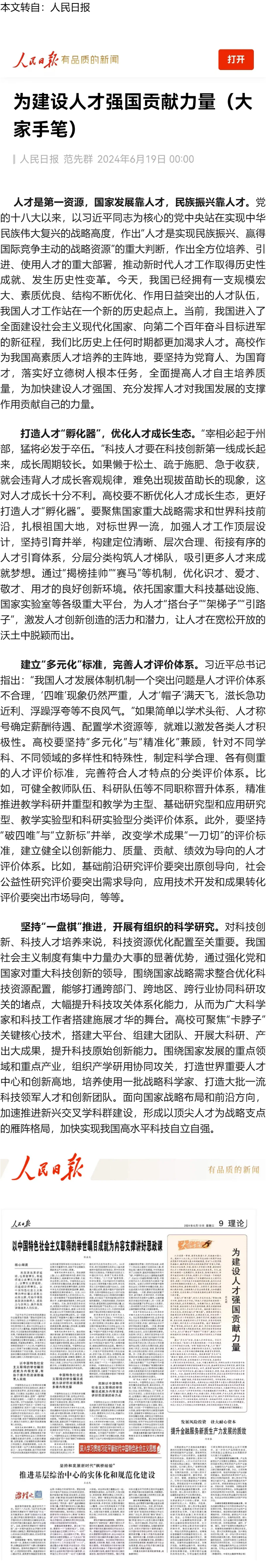 眼科专家/中国工程院范先群院士:为建设人才强国贡献力量!---2024.6.20 发布时间:2024-06-20 来源:人民日报 作者:人民日报