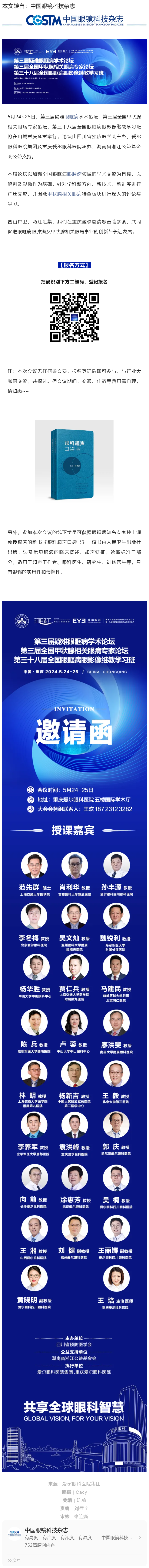 5.24-25重庆丨第三届疑难眼眶病学术论坛即将召开---2024.5.9 发布时间:2024-05-09 来源:中国眼镜科技杂志 作者:中国眼镜科技杂志