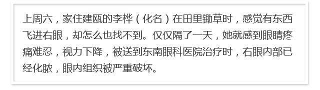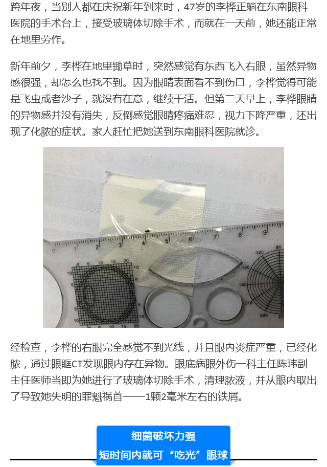 新闻中心 您的当前位置:首页 > 新闻中心 > 2毫米的小铁屑,不到 2毫米的小铁屑,不到一天就把她的眼球“吃光”----------------2018-01-09 发布时间:2018-01-09 来源: 作者: 原文链接 更多新闻请点击: http://www.yanke360.com/news/
