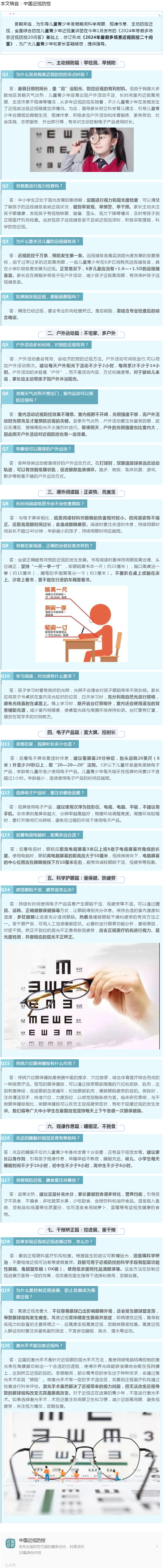 2024年暑假多场景近视防控二十问答---2024.7.2 发布时间:2024-07-02 来源:中国近视防控 作者:中国近视防控