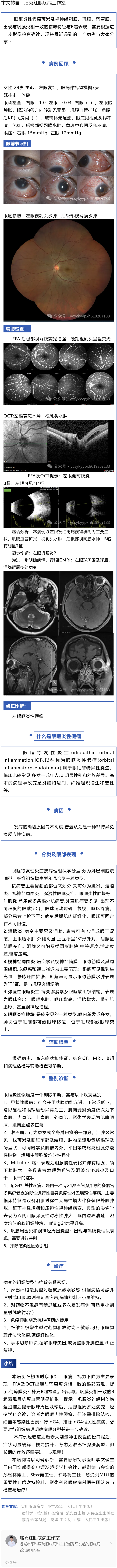 一例眼眶炎性假瘤的诊疗历程---2024.5.31 发布时间:2024-05-31 来源:潘秀红眼底病工作室 作者:潘秀红眼底病工作室