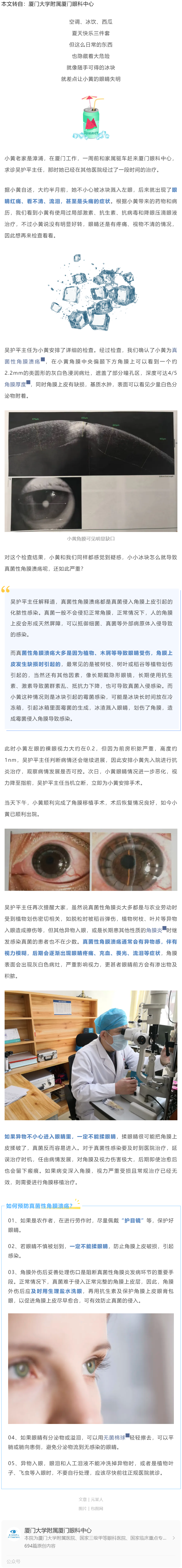 小小冰块,竟然有这么大隐患!厦门一女子险因它失明...---2024.8.5 发布时间:2024-08-05 来源:厦门大学附属厦门眼科 作者:厦门大学附属厦门眼科