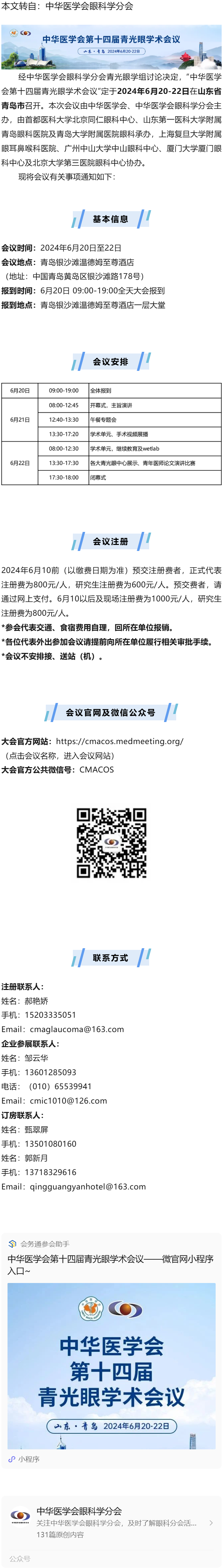 6.20-22青岛 | 中华医学会第十四届青光眼学术会议---2024.5.22 发布时间:2024-05-22 来源:中华医学会眼科学分会 作者:中华医学会眼科学分会