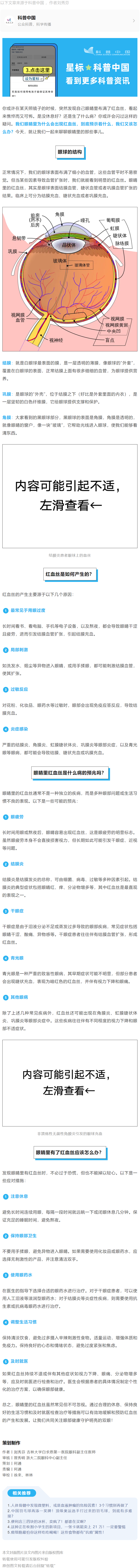 眼睛里长了红血丝不要轻视!有红血丝后这 5 件事你一定要做!---2024.8.16 发布时间:2024-08-16 来源:科普中国 作者:刘秀芬