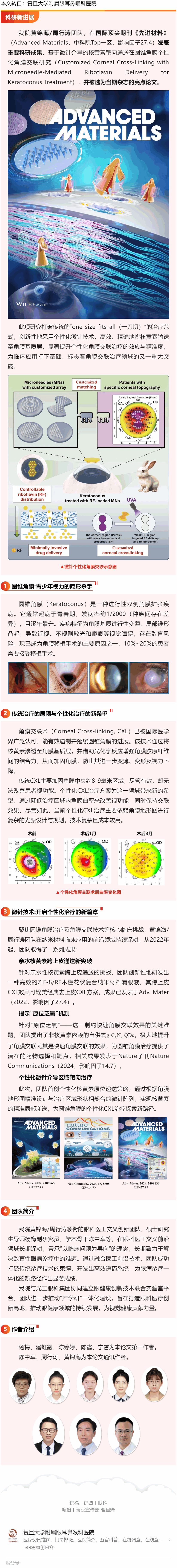 新闻中心 您的当前位置:首页 > 新闻中心 > 黄锦海/周行涛团队发 黄锦海/周行涛团队发表新型个性化交联新成果:圆锥角膜“新针”打破传统一刀切治疗范式---2024.12.06 发布时间:2024-12-06 来源:复旦大学附属眼耳鼻喉 作者:复旦大学附属眼耳鼻喉