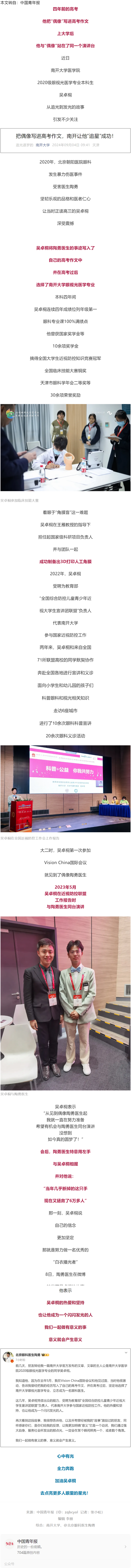 眼科学子吴卓桐:把“偶像”陶勇写进高考作文的他,“追星”成功!---2024.9.11 发布时间:2024-09-11 来源:中国青年报 作者:中国青年报
