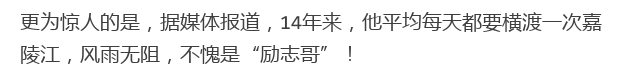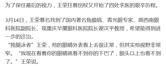 新闻中心 您的当前位置:首页 > 新闻中心 > 64岁“独腿泳者”14年 64岁“独腿泳者”14年每天横渡嘉陵江,现成为“青光眼防治公益大使”----------------2018-03-17 发布时间:2018-03-17 来源: 作者: 原文链接 更多新闻请点击: http://www.yanke360.com/news/