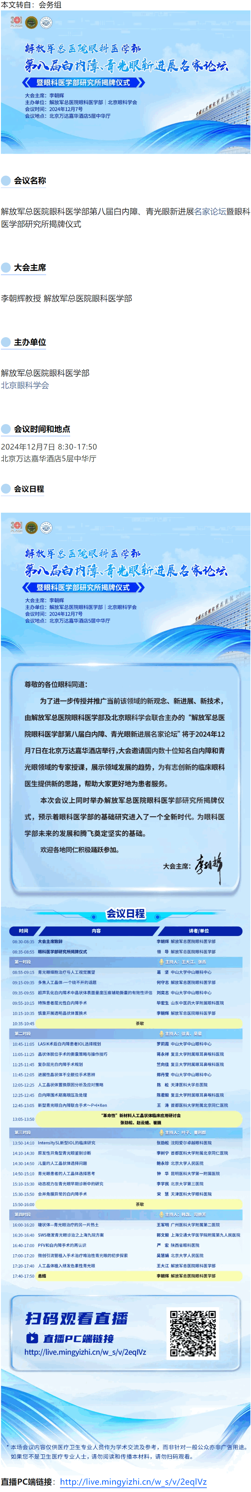 12.7北京(二轮通知) | 解放军总医院眼科医学部第八届白内障、青光眼新进展名家论坛暨眼科医学部研究所揭牌仪式(线上+线下)---2024.11.22 发布时间:2024-11-22 来源:会务组 作者:会务组