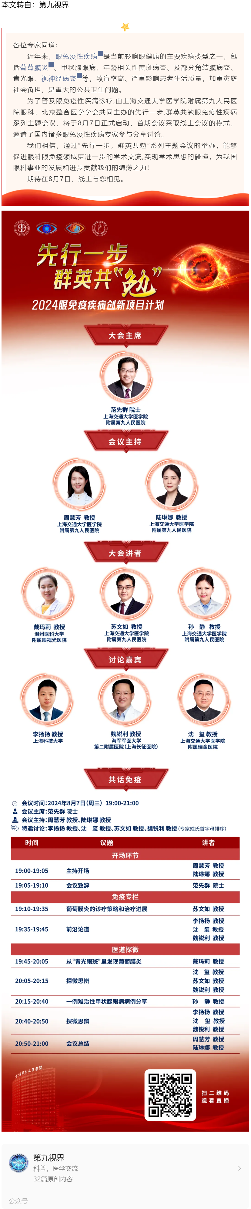 8.7直播|“先行一步,群英共勉”2024眼免疫疾病创新项目计划---2024.8.5 发布时间:2024-08-05 来源:第九视界 作者:第九视界