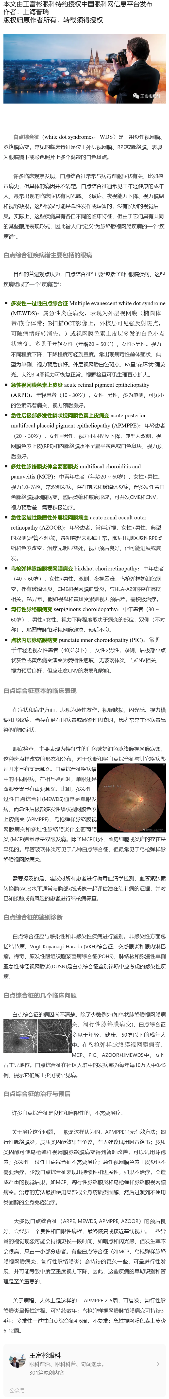 “白点综合征”主要包括的病种及临床处理----2024.5.14 发布时间:2024-05-14 来源:王富彬眼科 作者:上海普瑞
