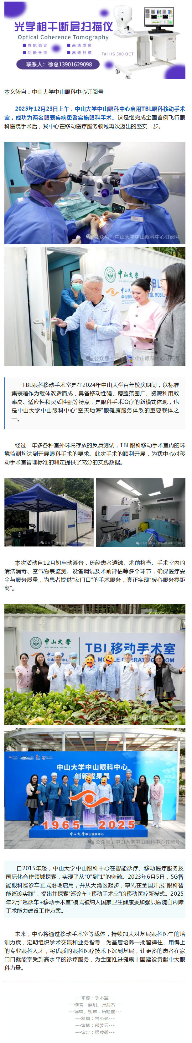 移动巡回医疗添新翼,中山大学中山眼科中心TBL眼科移动手术室开展眼科手术--2025-12-26 发布时间:2025-12-26 来源: 作者: