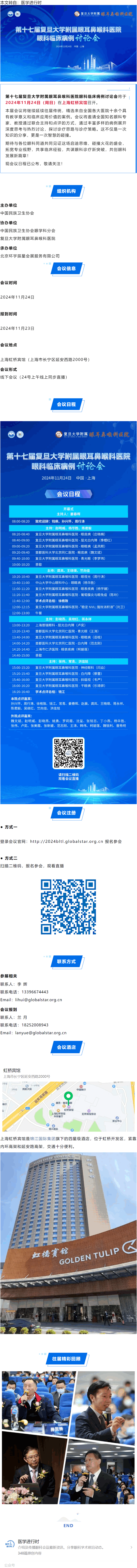最新日程 | 第十七届复旦大学附属眼耳鼻喉科医院眼科临床病例讨论会(11.24上海)---2024.11.21 发布时间:2024-11-21 来源:医学进行时 作者:医学进行时