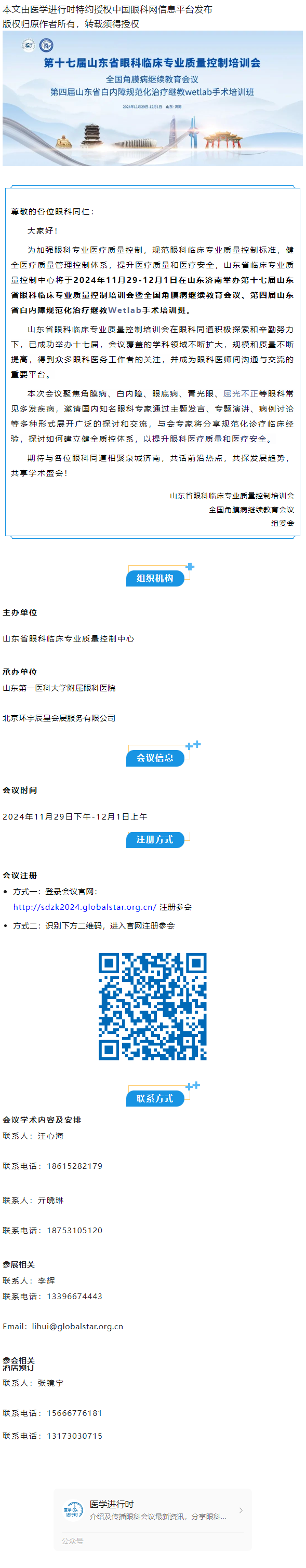 11.29-12.1 济南丨第十七届山东省眼科临床专业质量控制培训会暨全国角膜病继续教育会议---2024.10.22 发布时间:2024-10-22 来源: 作者: