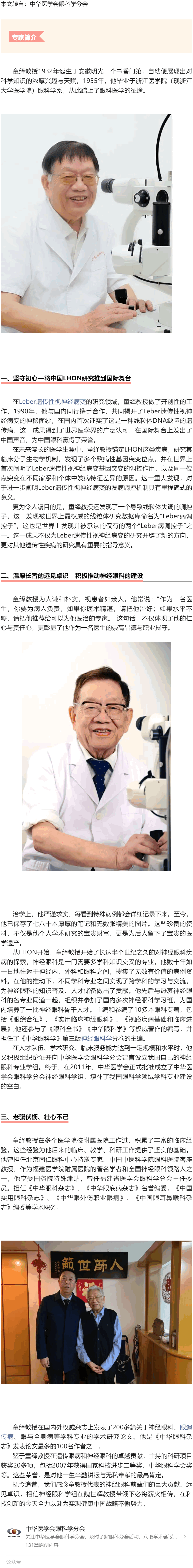 童绎教授——坚守初心 将中国LHON研究推到国际舞台---2024.11.7 发布时间:2024-11-07 来源:中华医学会眼科学分会 作者:中华医学会眼科学分会