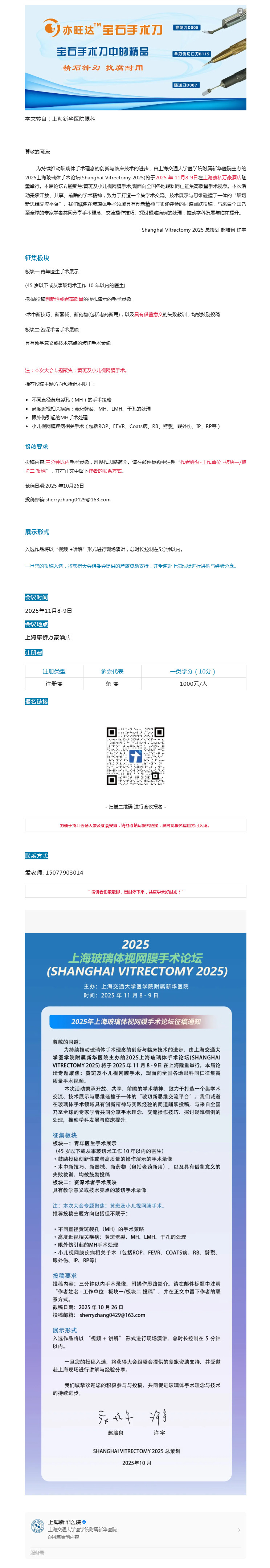 11.8-9上海| 2025年上海玻璃体手术论坛暨国家级小儿视网膜疾病诊治新进展继续教育学习班(第一轮会议预告及征稿通知)---202 5-10-16 发布时间:2025-10-16 来源: 作者: