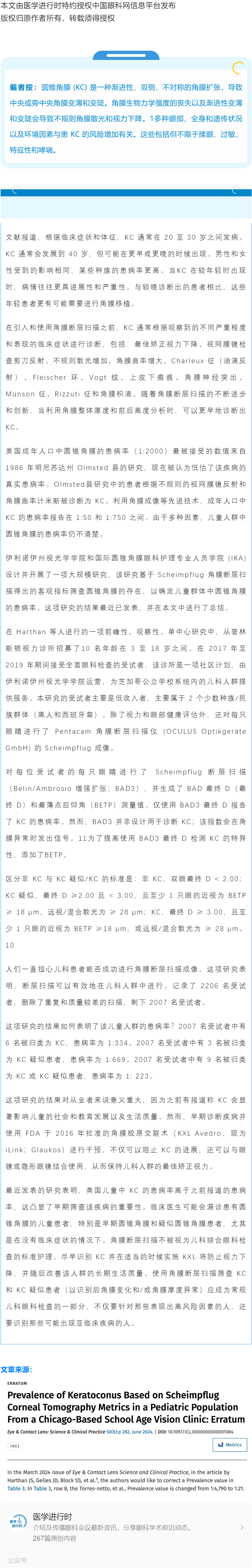 最新数据显示,儿童患者圆锥角膜患病率惊人地高---2024.8.28 发布时间:2024-08-28 来源:医学进行时 作者:医学进行时