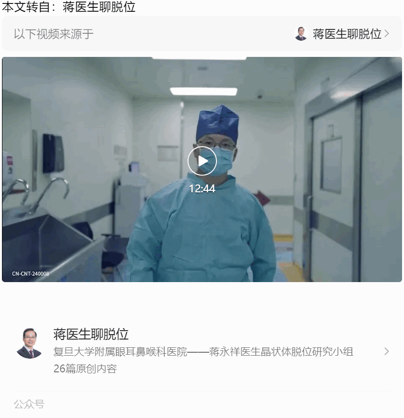 人视间:蒋永祥医生团队的马凡综合征晶状体脱位追光之路---2024.11.5 发布时间:2024-11-05 来源:蒋医生聊脱位 作者:蒋医生聊脱位