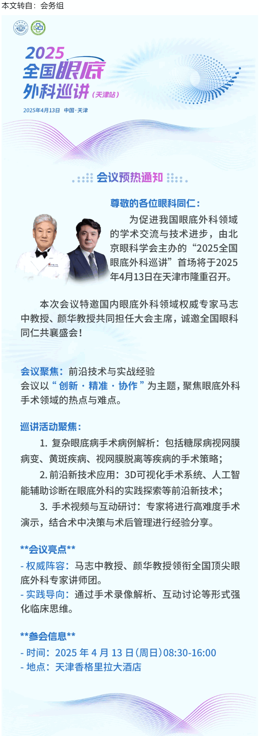 新闻中心 您的当前位置:首页 > 新闻中心 > 4.13天津 | 2025全国 4.13天津 | 2025全国眼底外科巡讲(天津站)---2025.3.21 发布时间:2025-03-21 来源:会务组 作者:会务组