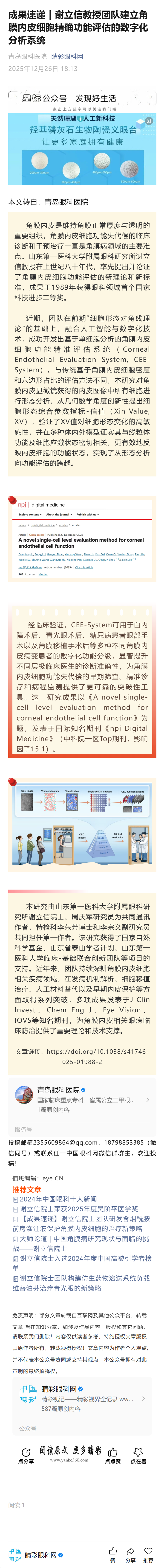 新闻中心 您的当前位置:首页 > 新闻中心 > 成果速递 | 谢立信教 成果速递 | 谢立信教授团队建立角膜内皮细胞精确功能评估的数字化分析系统--------2025-12-26 发布时间:2025-12-26 来源: 作者:
