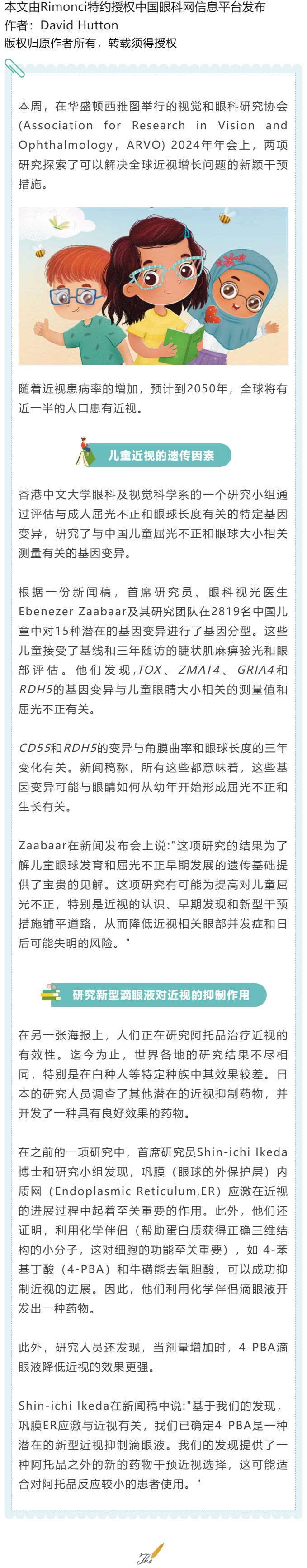 ARVO 2024:近视研究热点---2024.5.13 发布时间:2024-05-13 来源:Rimonci 作者:David Hutton