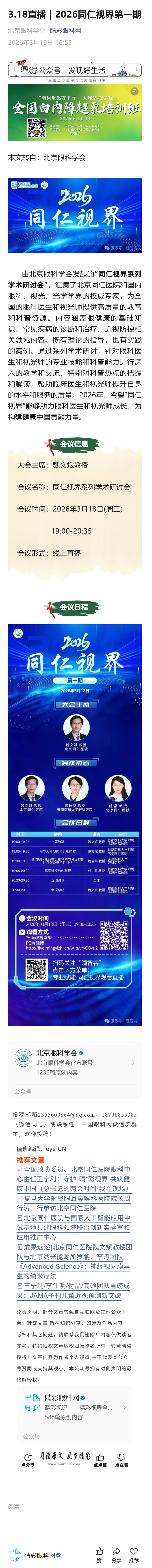 3.18直播 | 2026同仁视界第一期------2026-3-16