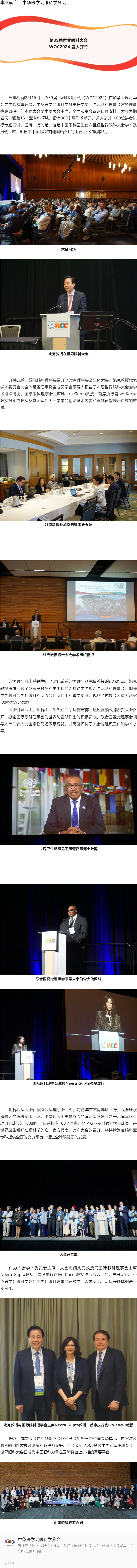 第39届世界眼科大会(WOC2024)盛大开幕 | 姚克教授率中国眼科团队闪耀温哥华---2024.8.19 发布时间:2024-08-19 来源:中华医学会眼科学分会 作者:中华医学会眼科学分会
