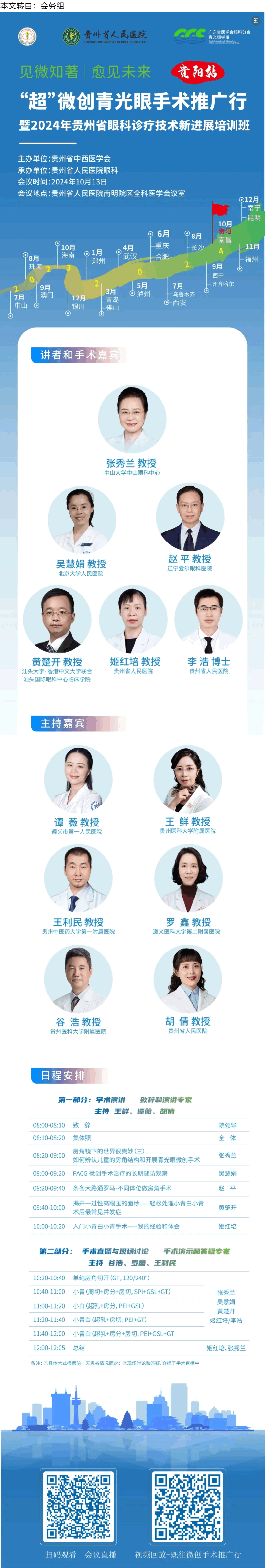 10.13贵阳|“超”微创青光眼手术推广行贵阳站暨2024年贵州省眼科诊疗技术新进展培训班(线上+线下)---2024.10.8 发布时间:2024-10-08 来源:会务组 作者:会务组