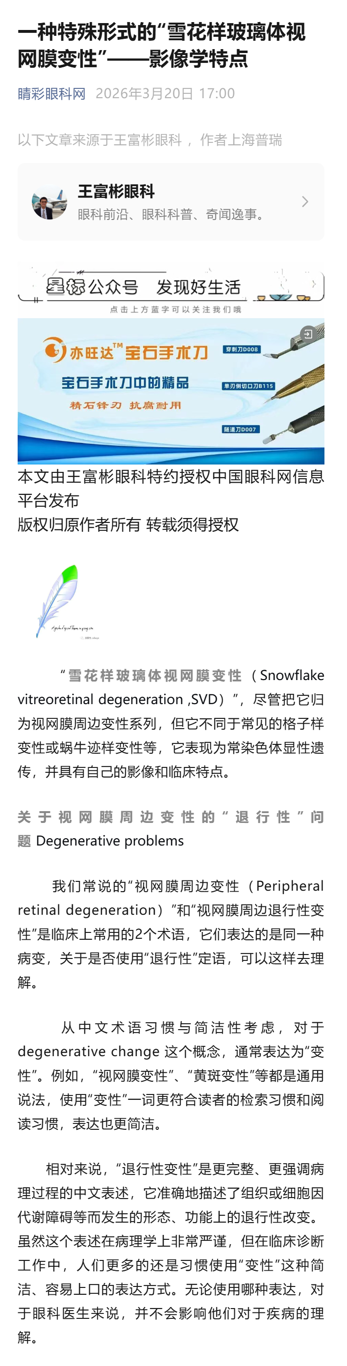 一种特殊形式的“雪花样玻璃体视网膜变性”——影像学特点