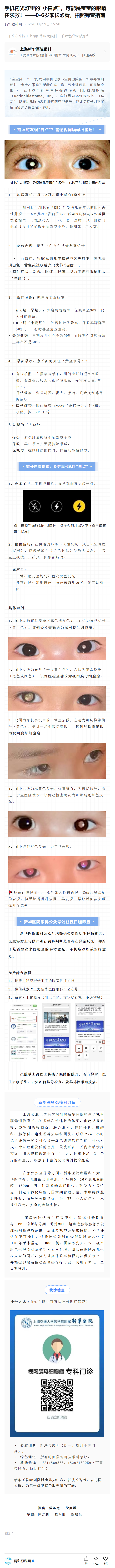手机闪光灯里的“小白 您的当前位置:首页 > 眼病百科 > 眼肿瘤 > 手机闪光灯里的“小白 手机闪光灯里的“小白点”,可能是宝宝的眼睛在求救!——0-6岁家长必看,拍照筛查指南 问答模式 暂无数据..