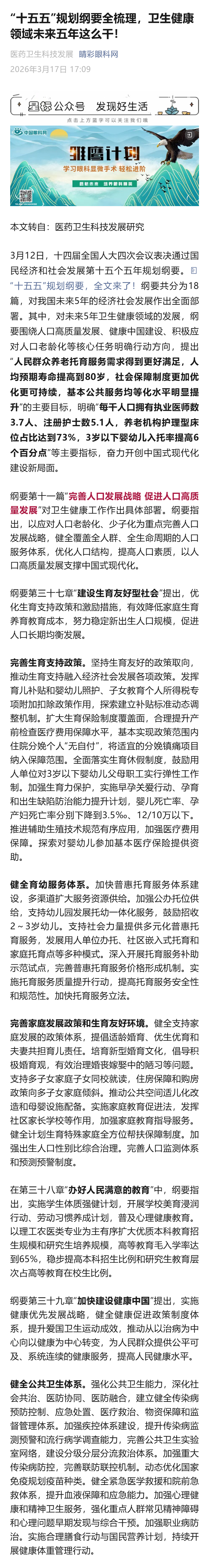 “十五五”规划纲要全梳理,卫生健康领域未来五年这么干!----2026-3-17