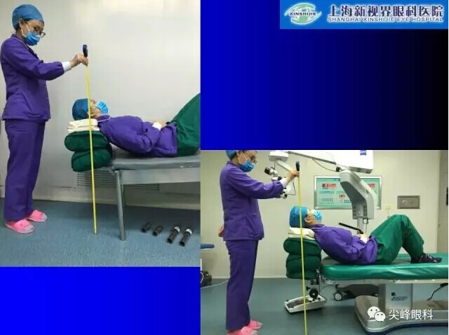 证患者的眼睛直视正上方,给手