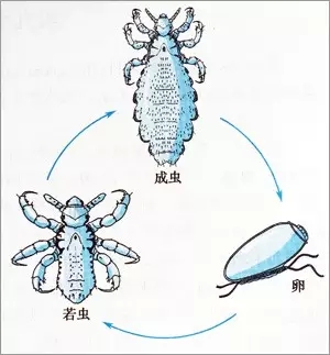 虱子是终生不离开宿主的体外寄生虫,发育过程有卵、若虫和成虫三个时期。