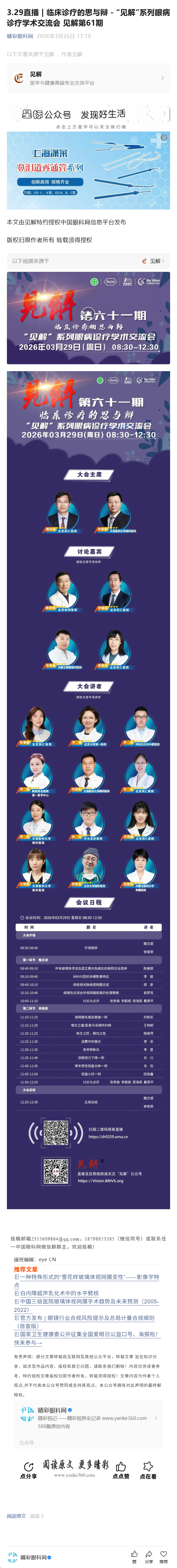 新闻中心 您的当前位置:首页 > 新闻中心 > 3.29直播 | 临床诊疗 3.29直播 | 临床诊疗的思与辩 - “见解”系列眼病诊疗学术交流会 见解第61期-----2026-3-26 发布时间:2026-03-26 来源: 作者:
