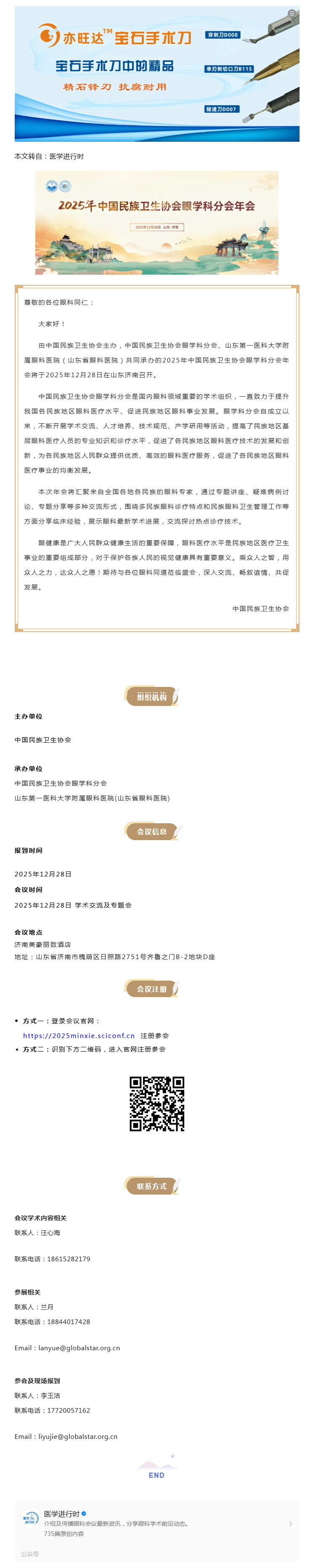 12.28济南丨2025年中国民族卫生协会眼学科分会年会【会议通知】---2025-11-27 发布时间:2025-11-27 来源: 作者: