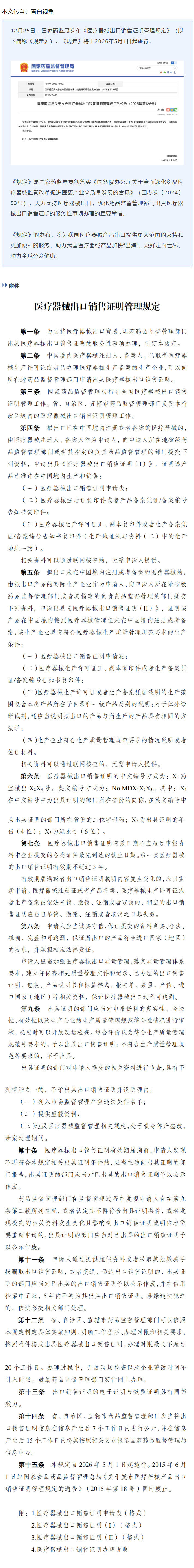 NMPA|《医疗器械出口销售证明管理规定》发布---2025.12.30