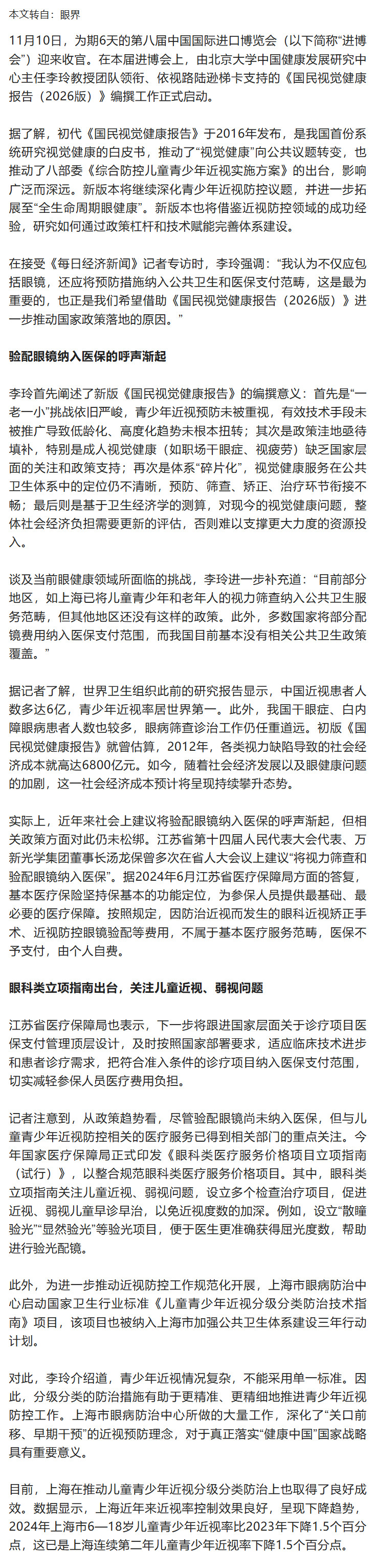 北大李玲教授:建议将儿童青少年验配近视防控眼镜纳入医保支付范畴---2025.11.13 发布时间:2025-11-13 来源: 作者: