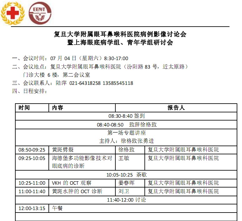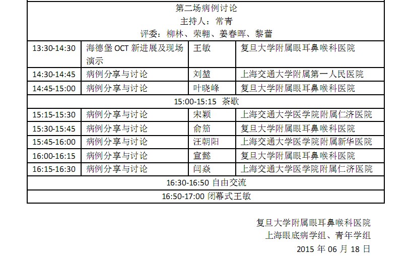 新闻中心 您的当前位置:首页 > 新闻中心 > 复旦大学附属眼耳鼻喉 复旦大学附属眼耳鼻喉科医院病例影像讨论会塈上海眼底病学组、青年学组研讨会-------------------------2015-06-25 发布时间:2015-06-25 来源: 作者: 更多新闻请点击:http://www.yanke360.com/news/