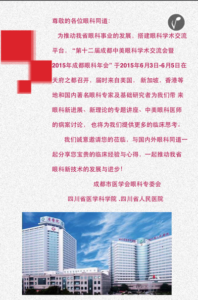 新闻中心 您的当前位置:首页 > 新闻中心 > 第十二届成都中美眼科 第十二届成都中美眼科学术交流会暨2015年成都眼科年会--------------------2015-05-25 发布时间:2015-05-25 来源: 作者: 来源:http://www.70c.com/w/QQACGG?from=singlemessage&isappinstalled=0 更多新闻请点击:http://www.yanke360.com/news/