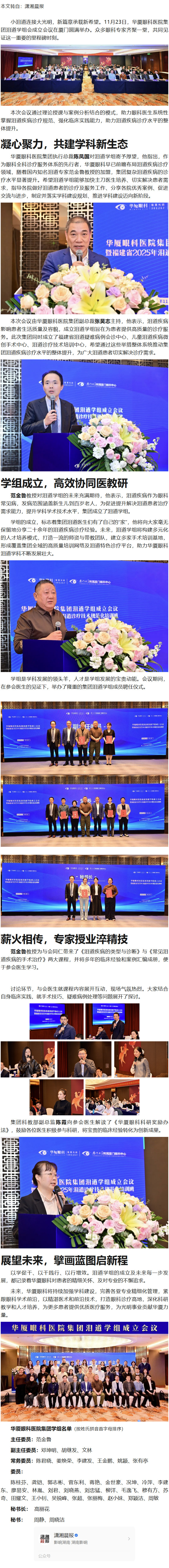 华厦眼科医院集团泪道学组正式成立:打造诊疗高地,助力光明事业---2025.11.27 发布时间:2025-11-27 来源: 作者: