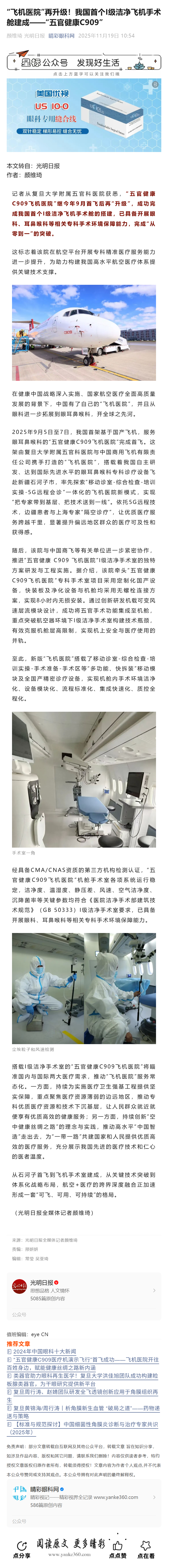 新闻中心 您的当前位置:首页 > 新闻中心 > “飞机医院”再升级! “飞机医院”再升级!我国首个I级洁净飞机手术舱建成——“五官健康C909”-----------2025-11-19 发布时间:2025-11-19 来源: 作者: 原文链接