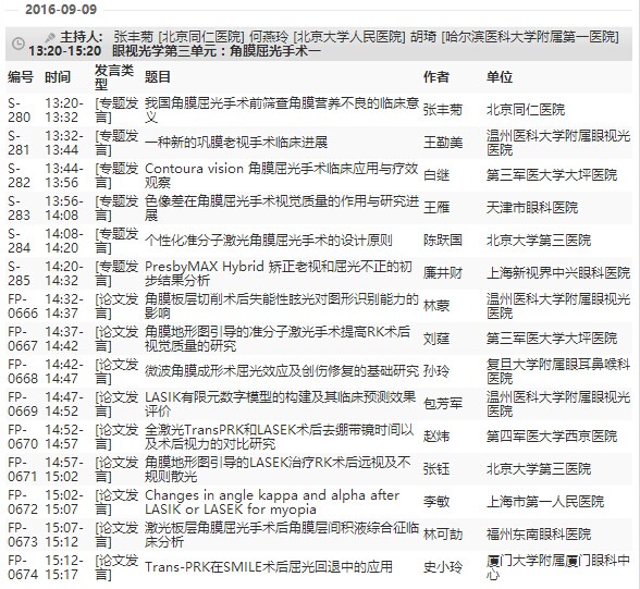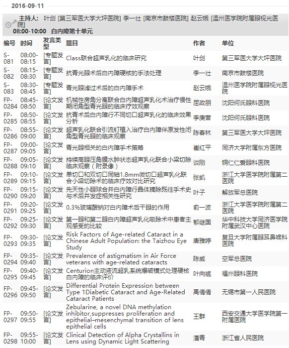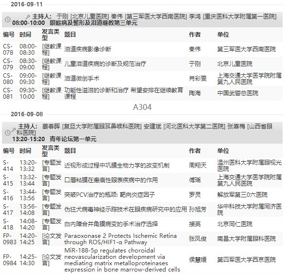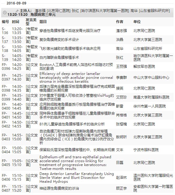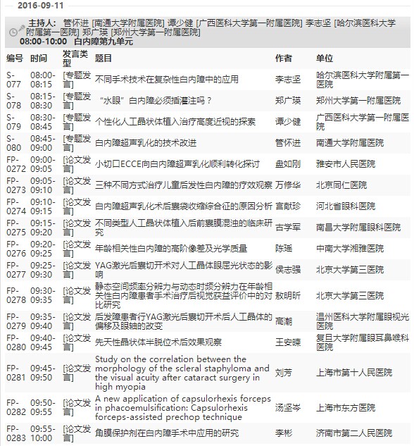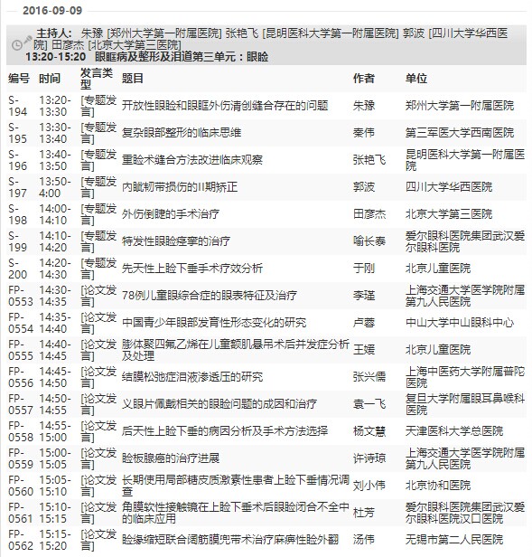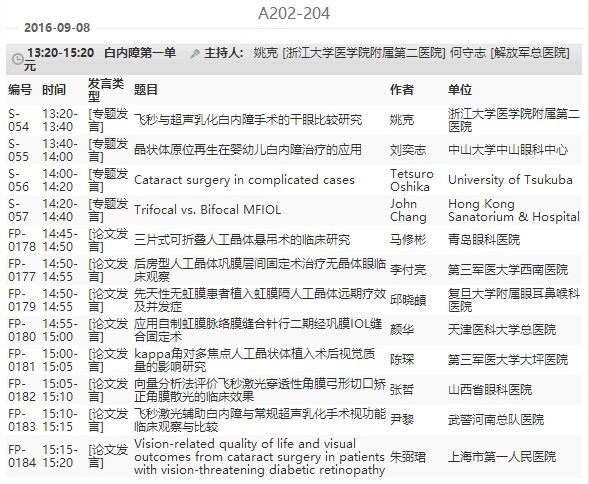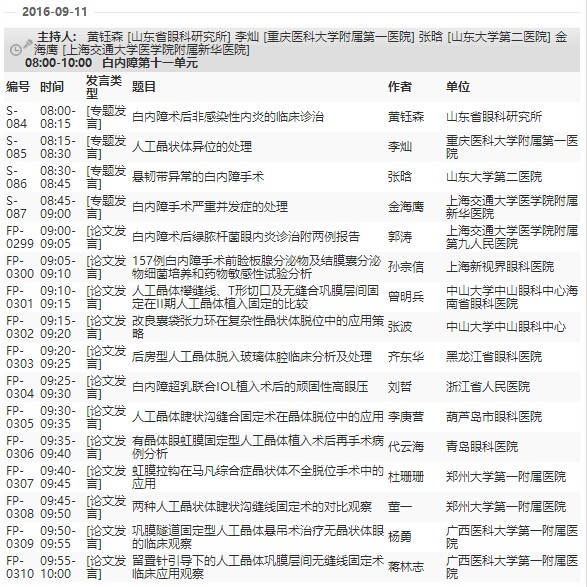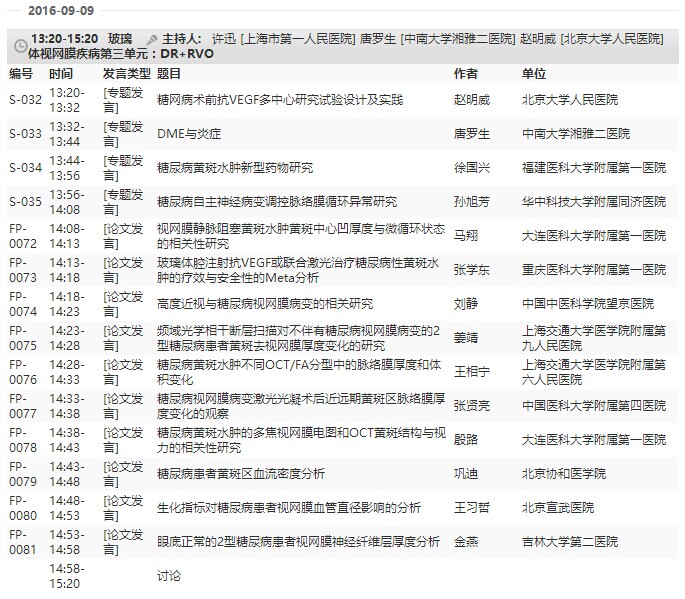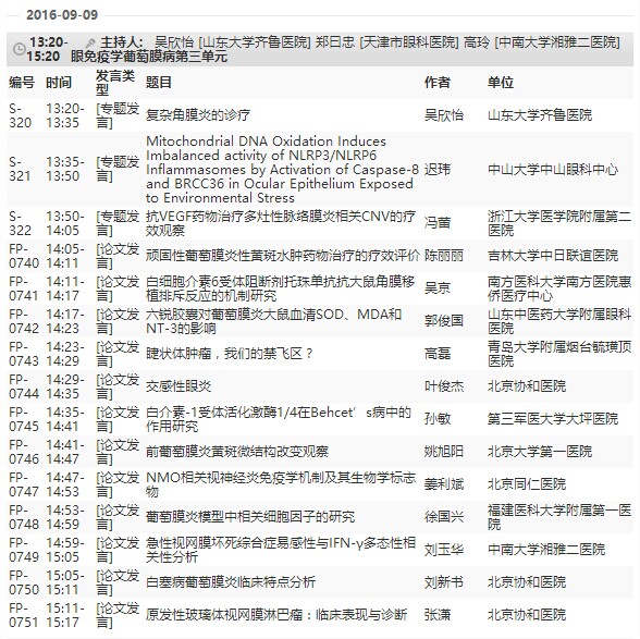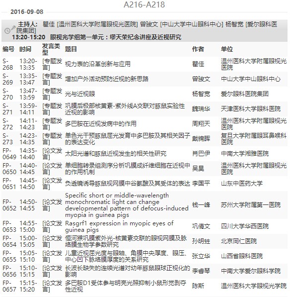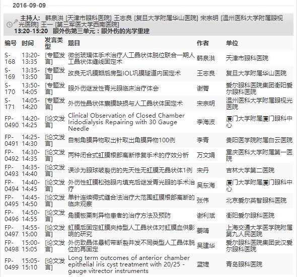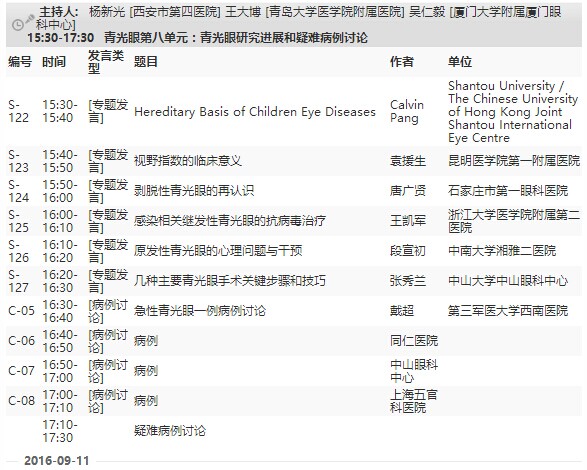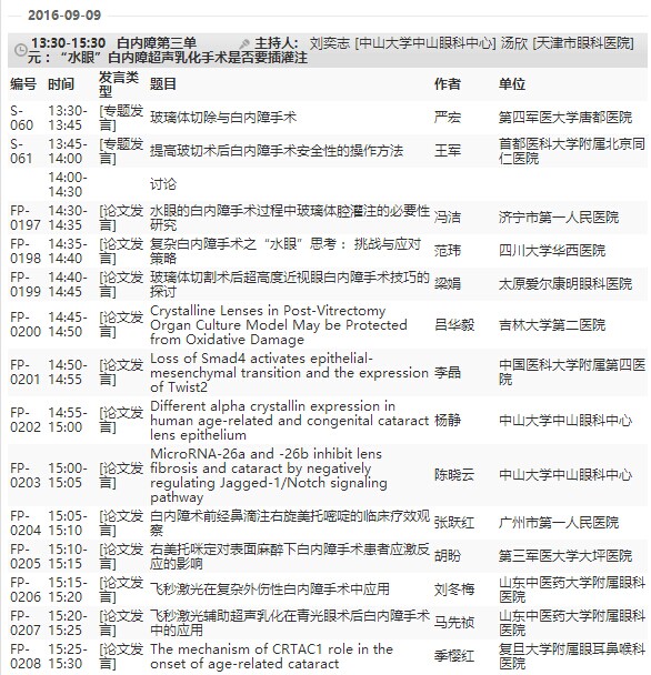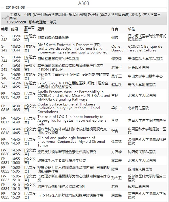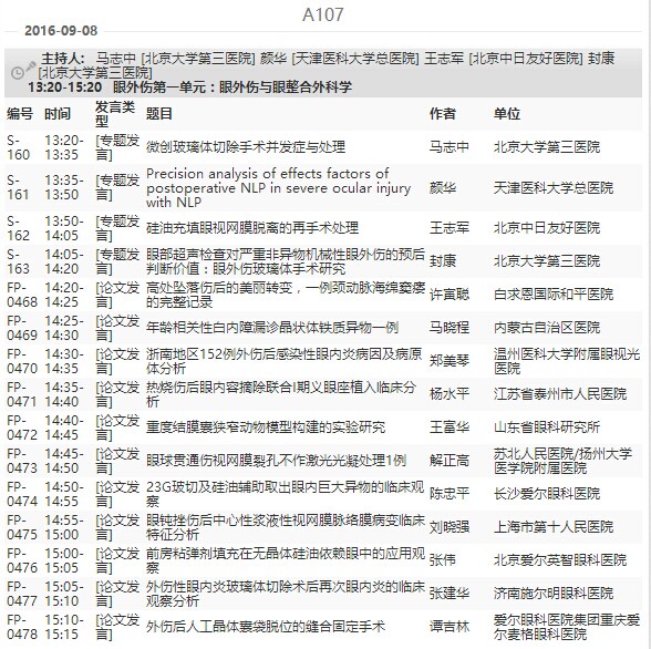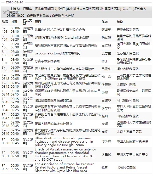 新闻中心 您的当前位置:首页 > 新闻中心 > 中华医学会第二十一次 中华医学会第二十一次全国眼科学术大会暨第五届全球华人眼科学术大会详细日程表------------------------------------2016-08-22 发布时间:2016-08-22 来源: 作者: 中华医学会第二十一次全国眼科学术大会 暨第五届全球华人眼科学术大会详细日程 更多新闻请点击: http://www.yanke360.com/news/